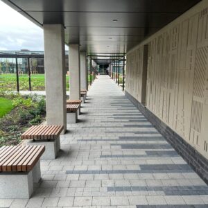 Once the slabs had been cast, we collaborated with FP McCann constructing the building frames / precast units. This was followed by Palmers doing the soft landscaping works following our earthworks and paving completion. We then worked alongside contractor Braniff Joinery Direct helping with the fence foundations.